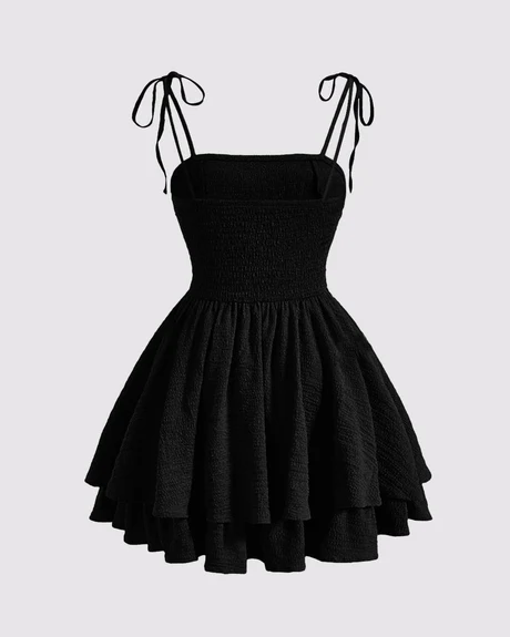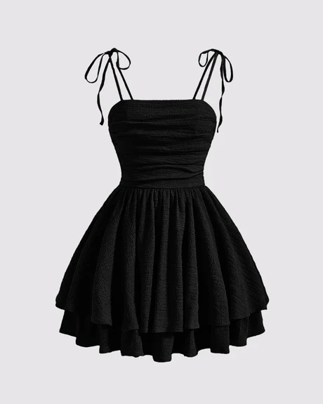 For - Tie Shoulder Layered Ruched Cami Dress